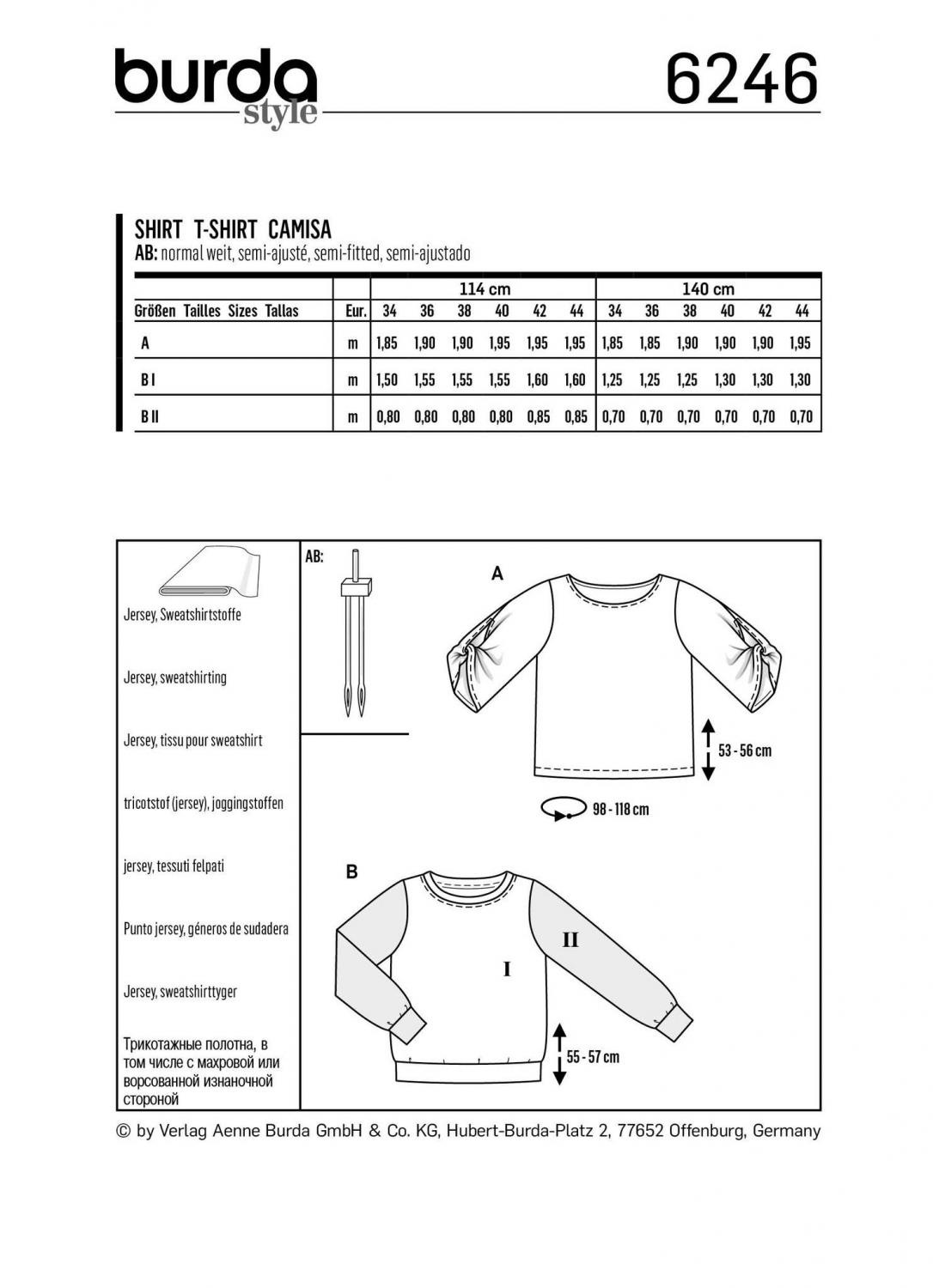 Burda Mönster 6246 - Topp – Sweatshirt – Rund halsringning – Ärmar med en twist