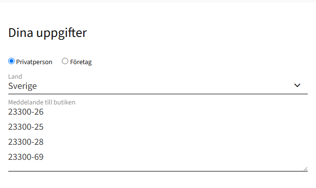 - Ange artikelnummer – till exempel: 12345, 67890, 11223