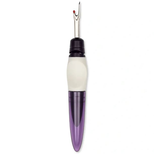 Sprättkniven levereras med ett skyddslock för säker förvaring när den inte används. Den är ett oumbärligt tillbehör för alla som arbetar med textilier och behöver ett pålitligt verktyg för att justera eller ta bort sömmar.