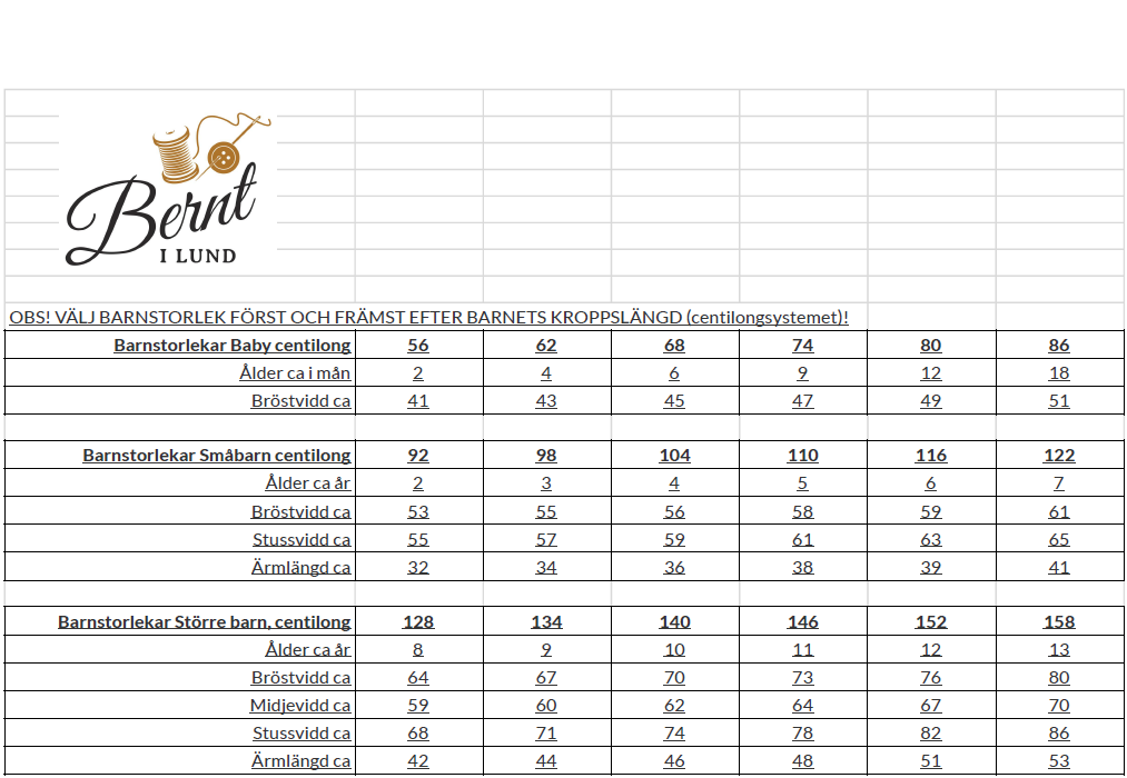 <ul><li>Storleksguide</li><li>Se vilken storlek som passar</li>